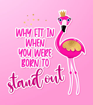 Why Fit In When You Were Born To Stand Out Motivational Quotes Hand Painted Brush Lettering With Flamingo Princess Good For T Shirt Posters Stock Vector Adobe Stock